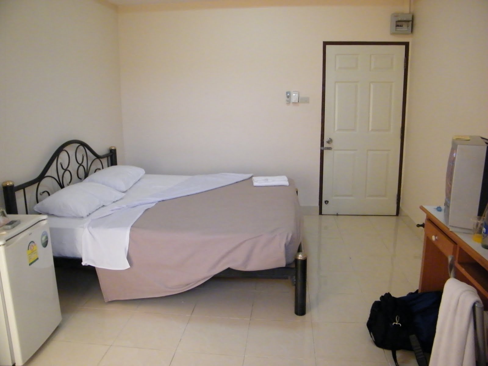 the price as of 2010 is 370 baht per night which is good value the air cons are good and the rooms have decent overhead fans also which are quiet the place get sometimes be noisey